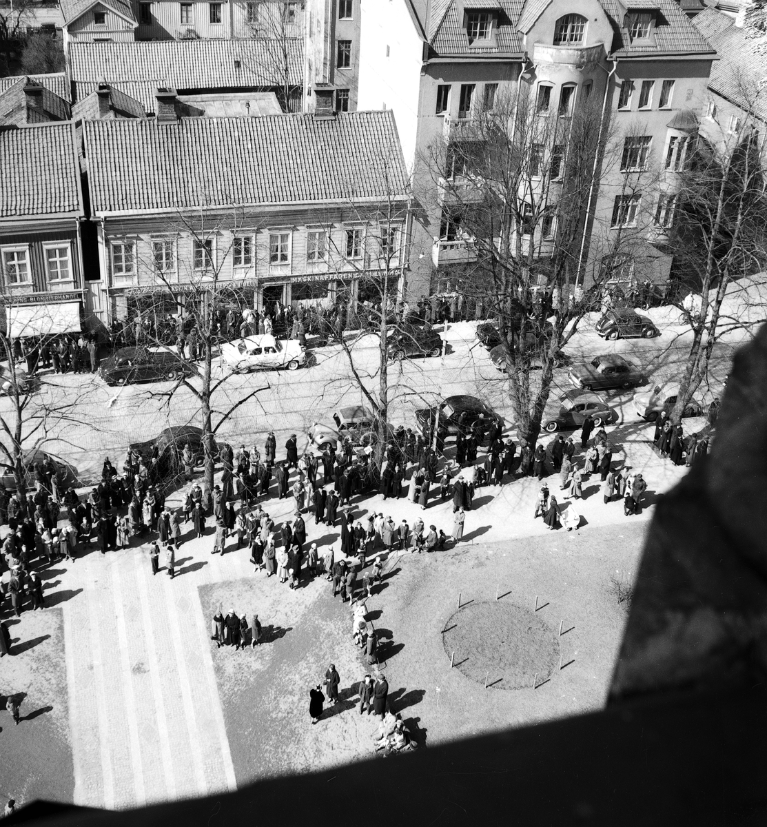 Publiken tittar på Sofiakyrkans nya klockspel i Jönköping.