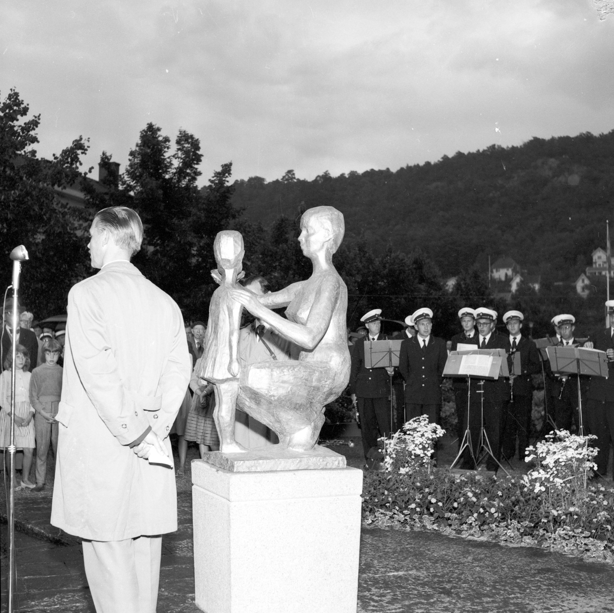 Invigning av statyn Törst som är gjord av konstnären Åke Jönsson. Den står på Esplanaden i Huskvarna.