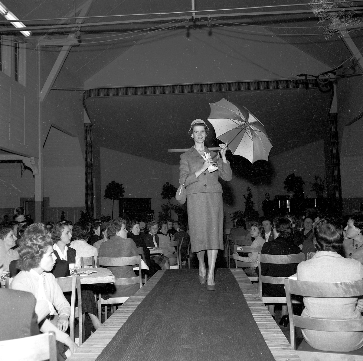 Mannekänguppvisning hos Husmödrarna i Huskvarna idrottshus.