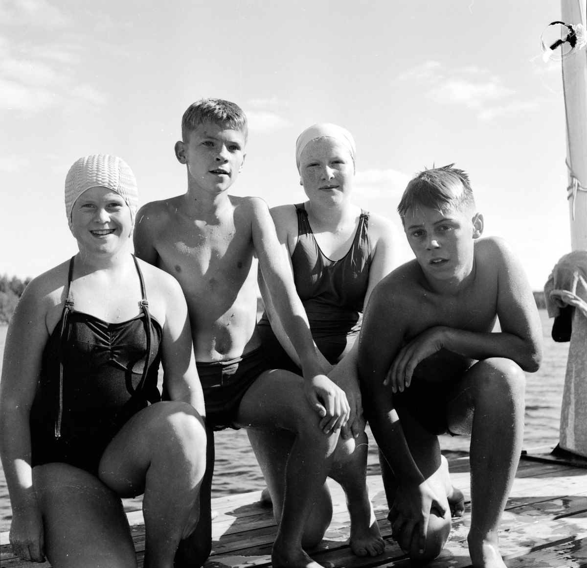En grupp barn på simskoleavslutning i Rogbergasjön utanför Jönköping.