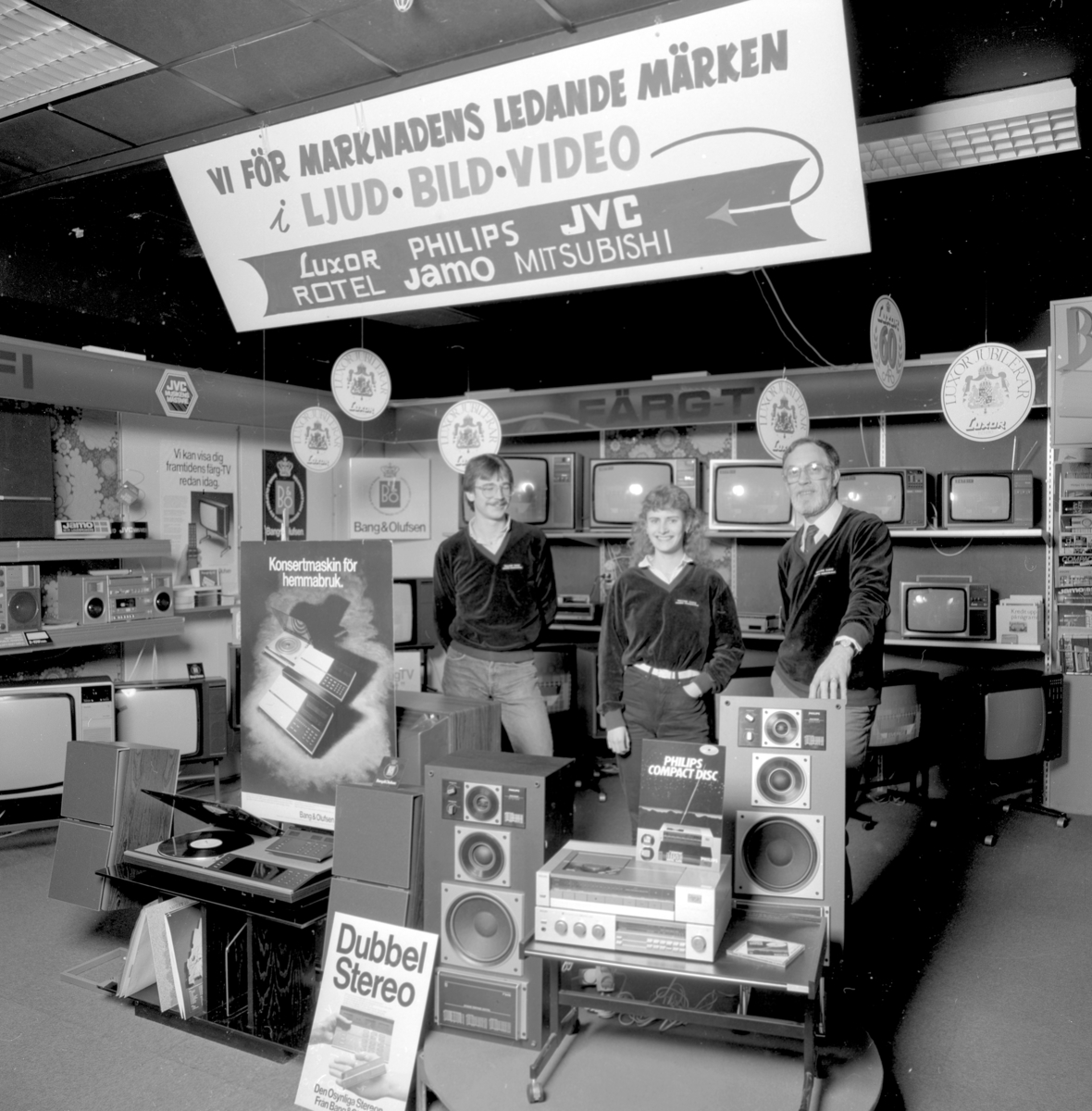 Här står tre expediter i Radio Wallins affär som fanns i Rosens köpcenter i Huskvarna.