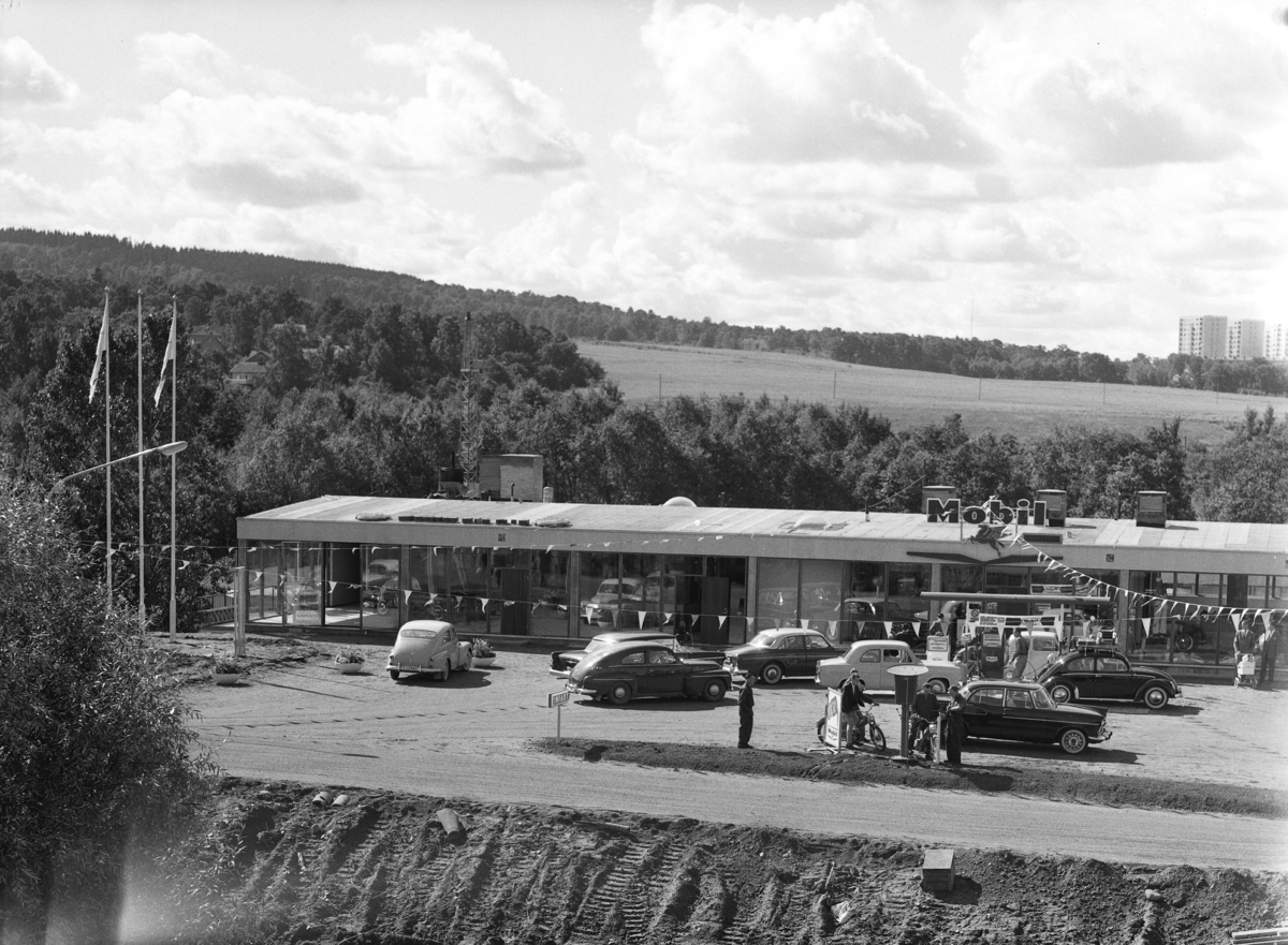 Nybygge på Madängen i Huskvarna, Bensinstationen Mobil den 11 september 1962.