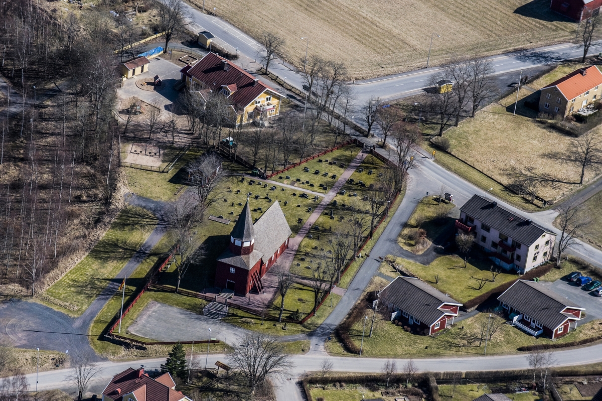 Flygfoto över Bondstorps kyrka i Vaggeryds kommun.