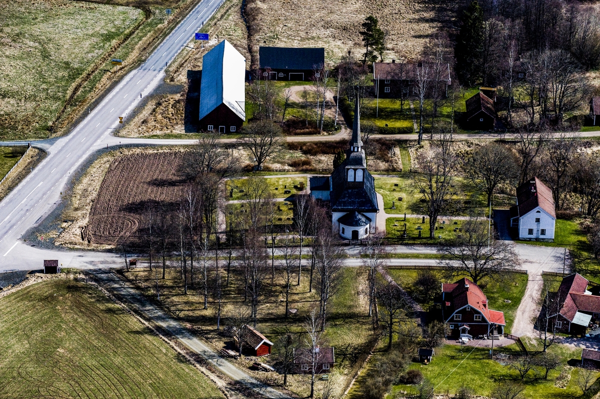 Flygfoto över Bredestad kyrka i Aneby kommun.