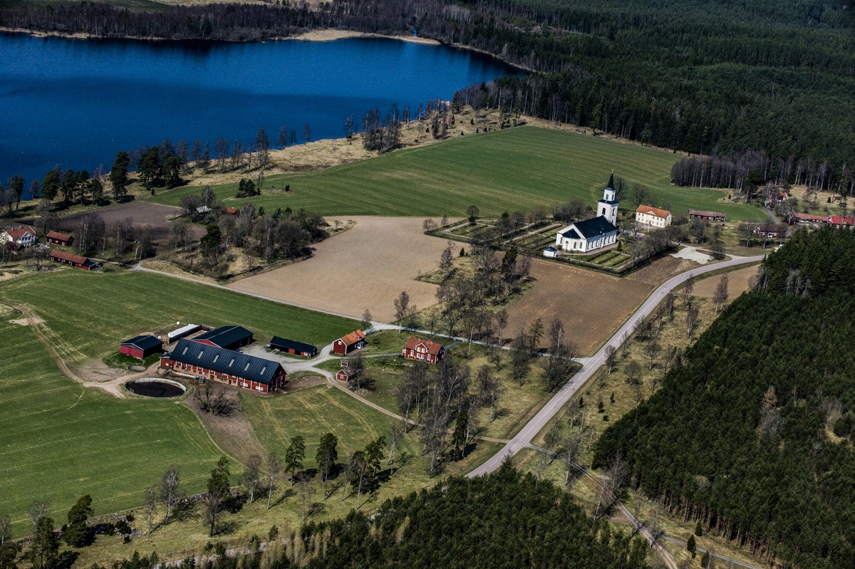 Titel: Flygfoto över Flisby kyrka i Nässjö kommun.