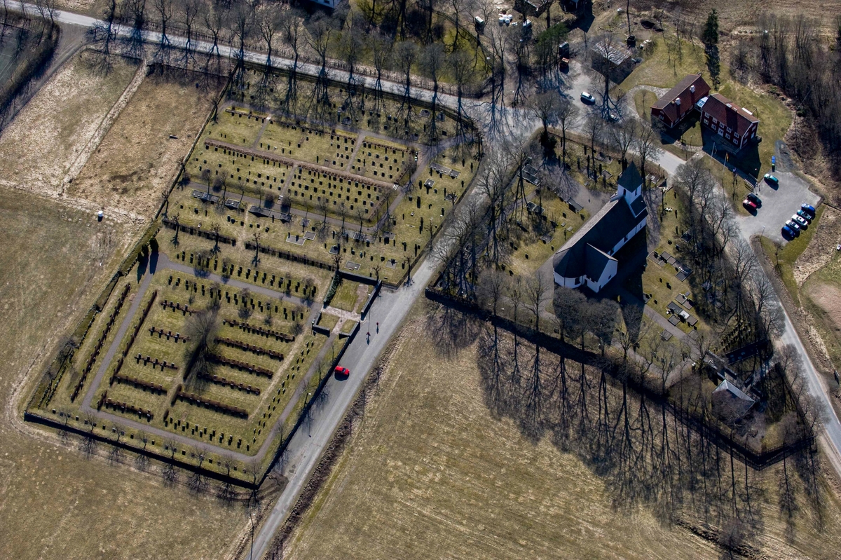 Flygfoto över Forserums kyrka i Nässjö kommun.