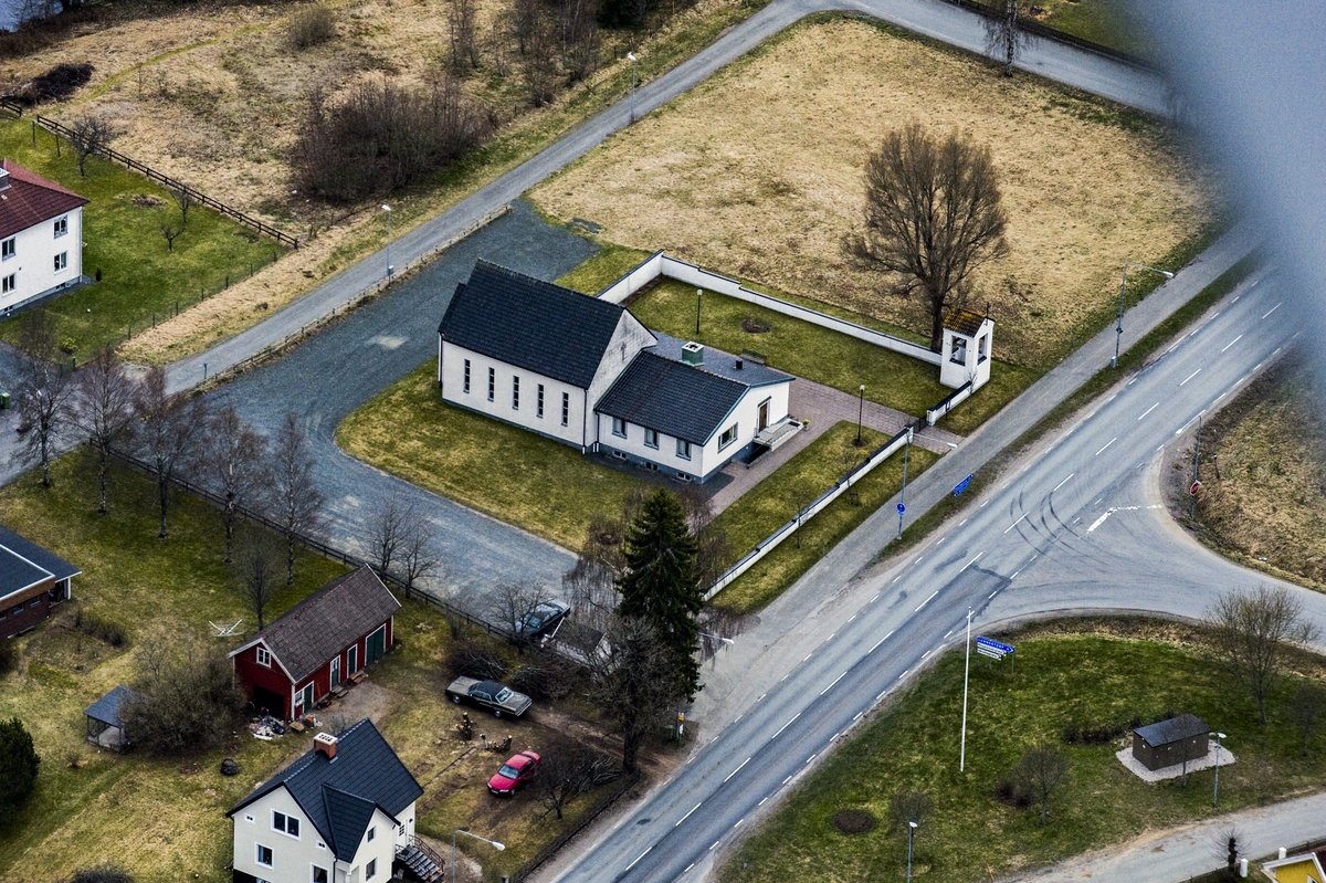 Titel: Flygfoto över Fredriksdals kyrka i Nässjö kommun.