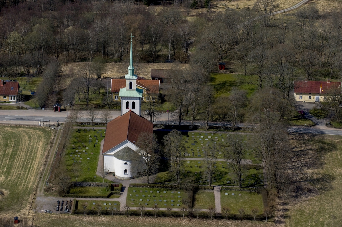 Titel: Flygfoto över Fröderyds kyrka i Vetlanda kommun.