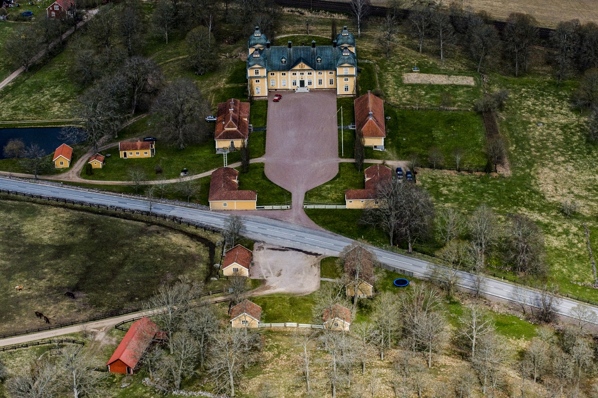 Titel: Flygfoto över Gripenbergs slott i Tranås kommun.