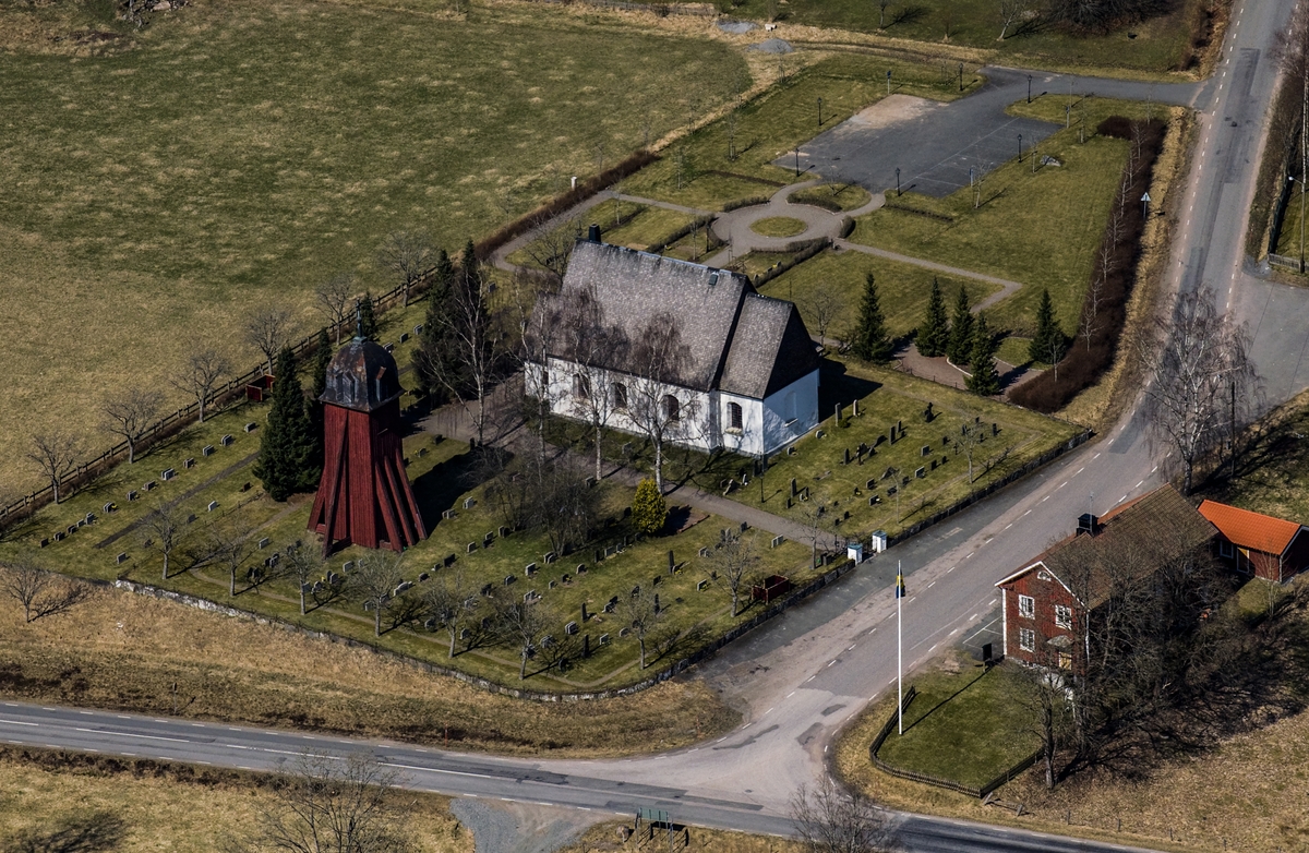 Flygfoto över Hagshults kyrka i Vaggeryds kommun.