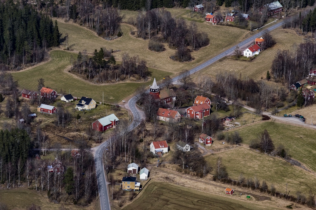 Flygfoto över Haurida kyrka i Aneby kommun.
