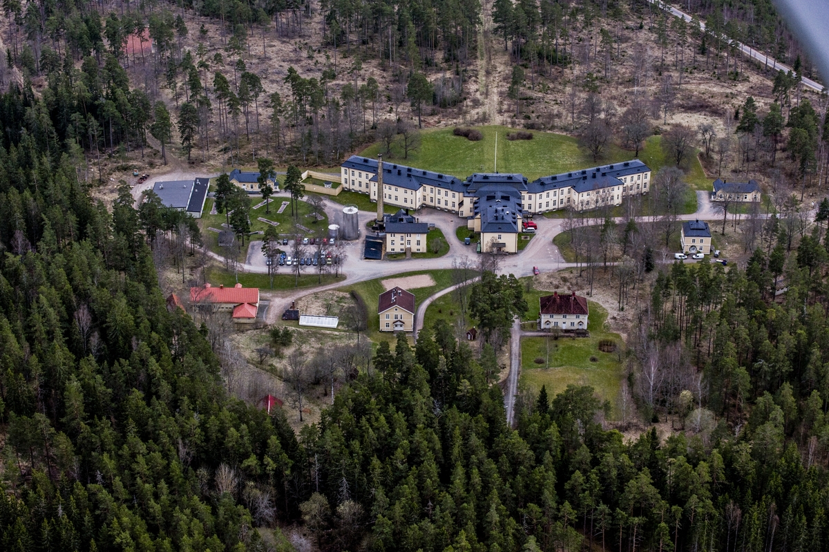 Flygfoto över Hässleby sanatorium utanför Mariannelund i Eksjö kommun.