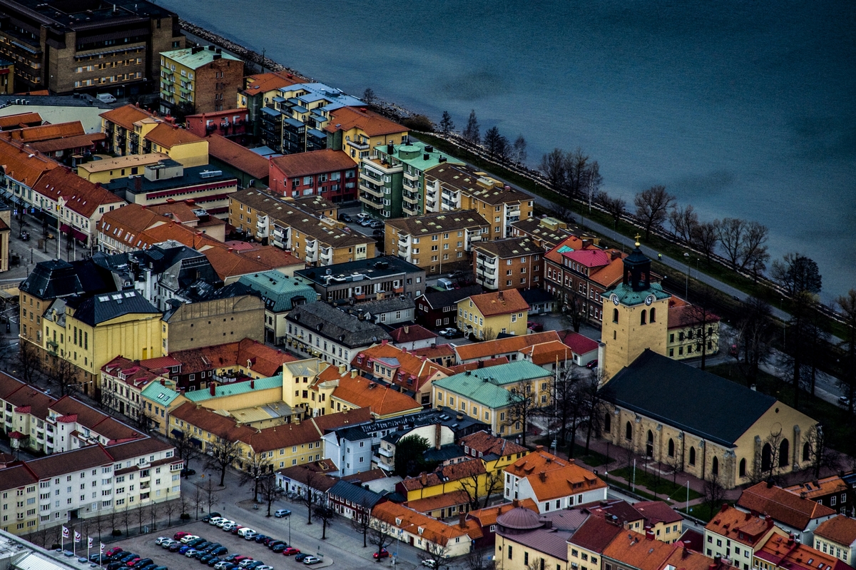 Flygfoto över Jönköpings centrum med Kristine kyrka.