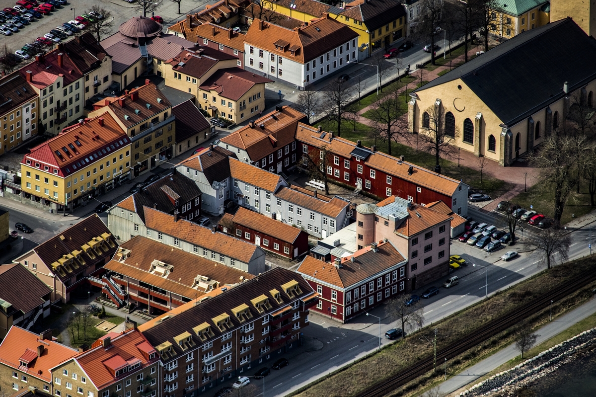 Titel: Flygfoto över Jönköpings centrum och Kristine kyrka.