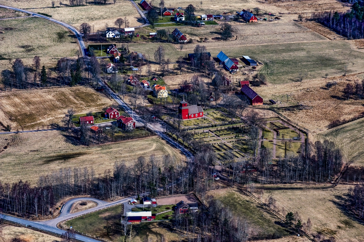 Flygfoto över Kävsjö kyrka i Gnosjö kommun.
