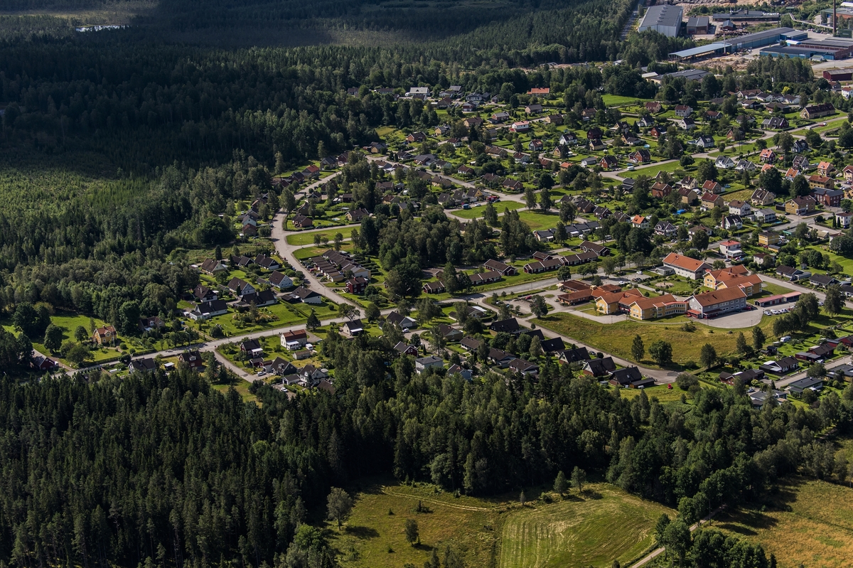 Titel: Flygfoto över Landsbro i Vetlanda kommun.