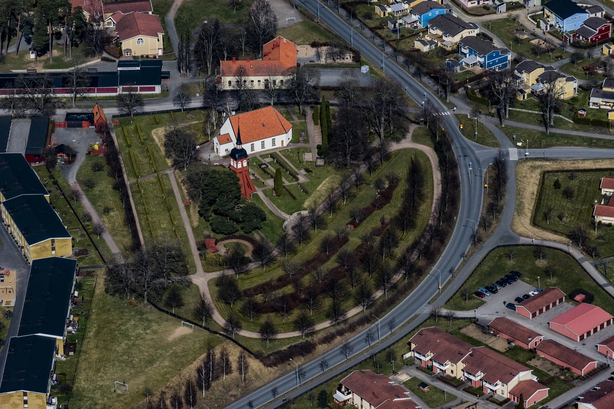 Titel: Flygfoto över Ljungarums kyrka i Jönköpings kommun.
