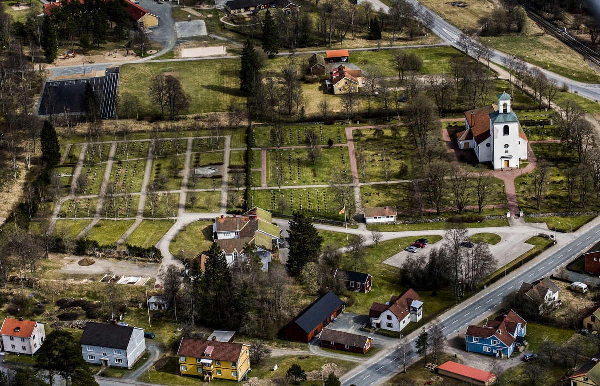 Flygfoto över Malmbäcks kyrka i Nässjö kommun.