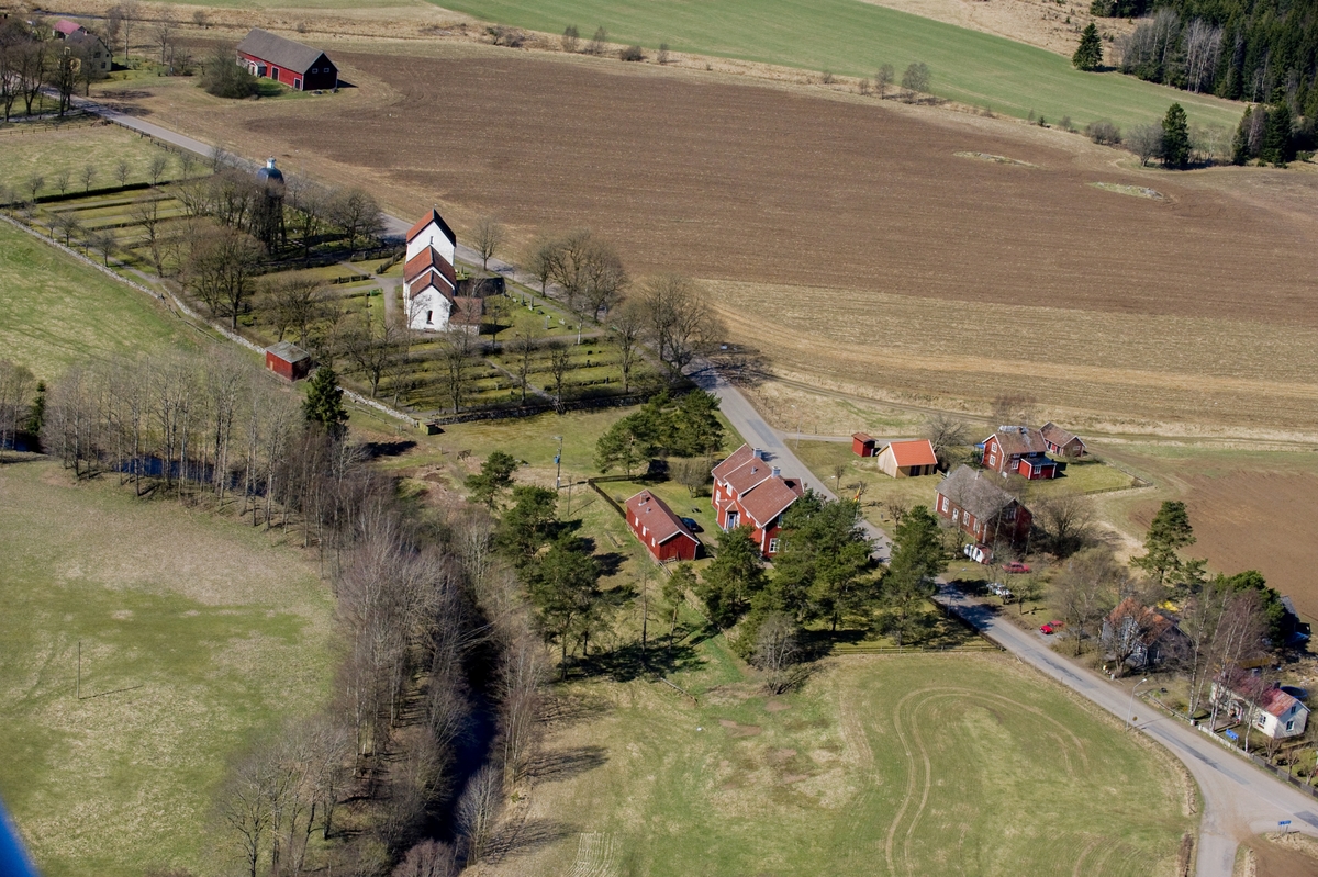 Titel: Flygfoto över Norra Ljunga kyrka i Sävsjö kommun.
