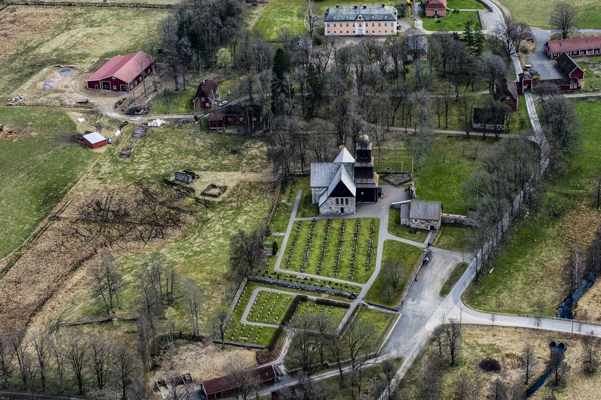 Flygfoto över Nydala kyrka och Nydala säteri i Värnamo kommun.