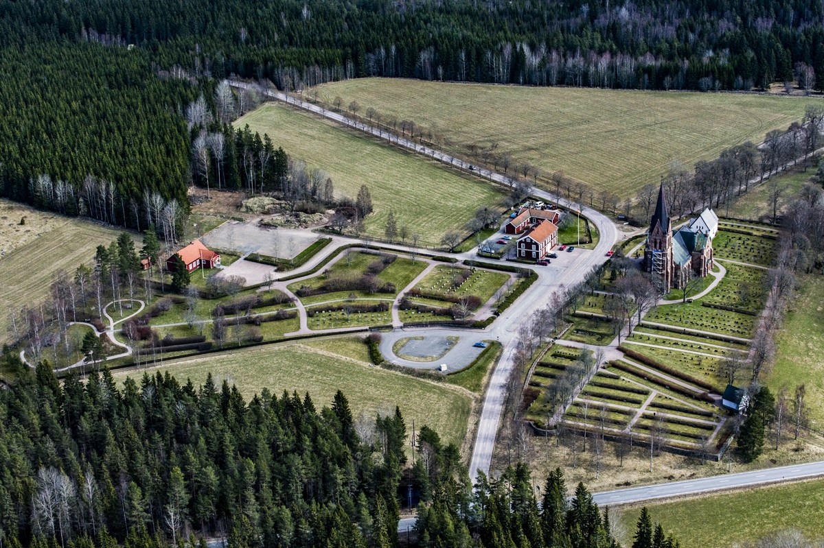 Flygfoto över Norra Solberga kyrka i Nässjö kommun.
