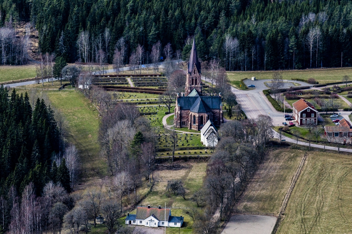 Titel: Flygfoto över Norra Solberga kyrka i Nässjö kommun.