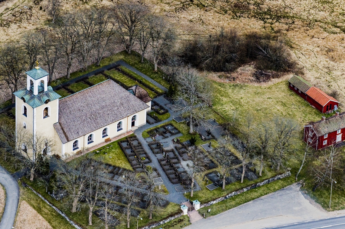 Titel: Flygfoto över Nässjö gamla kyrka.