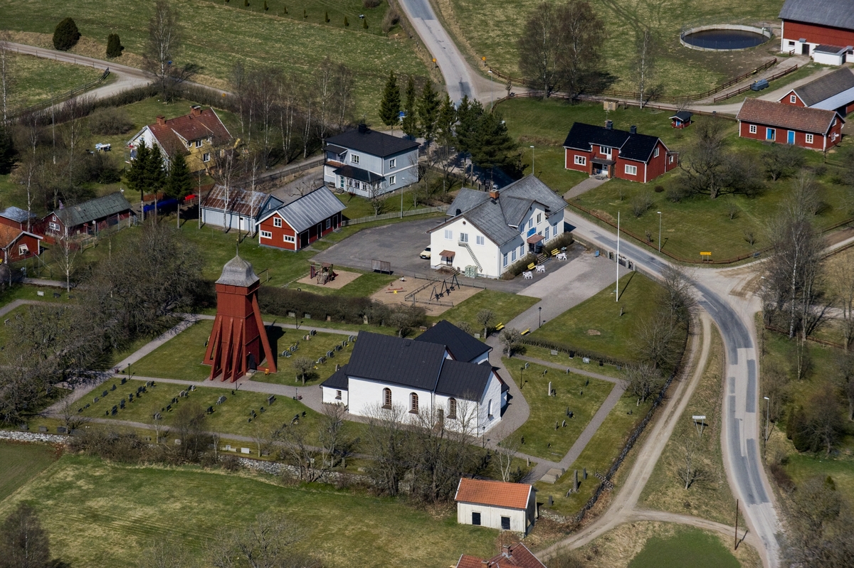 Titel: Flygfoto över Nävelsjö kyrka i Vetlanda kommun.