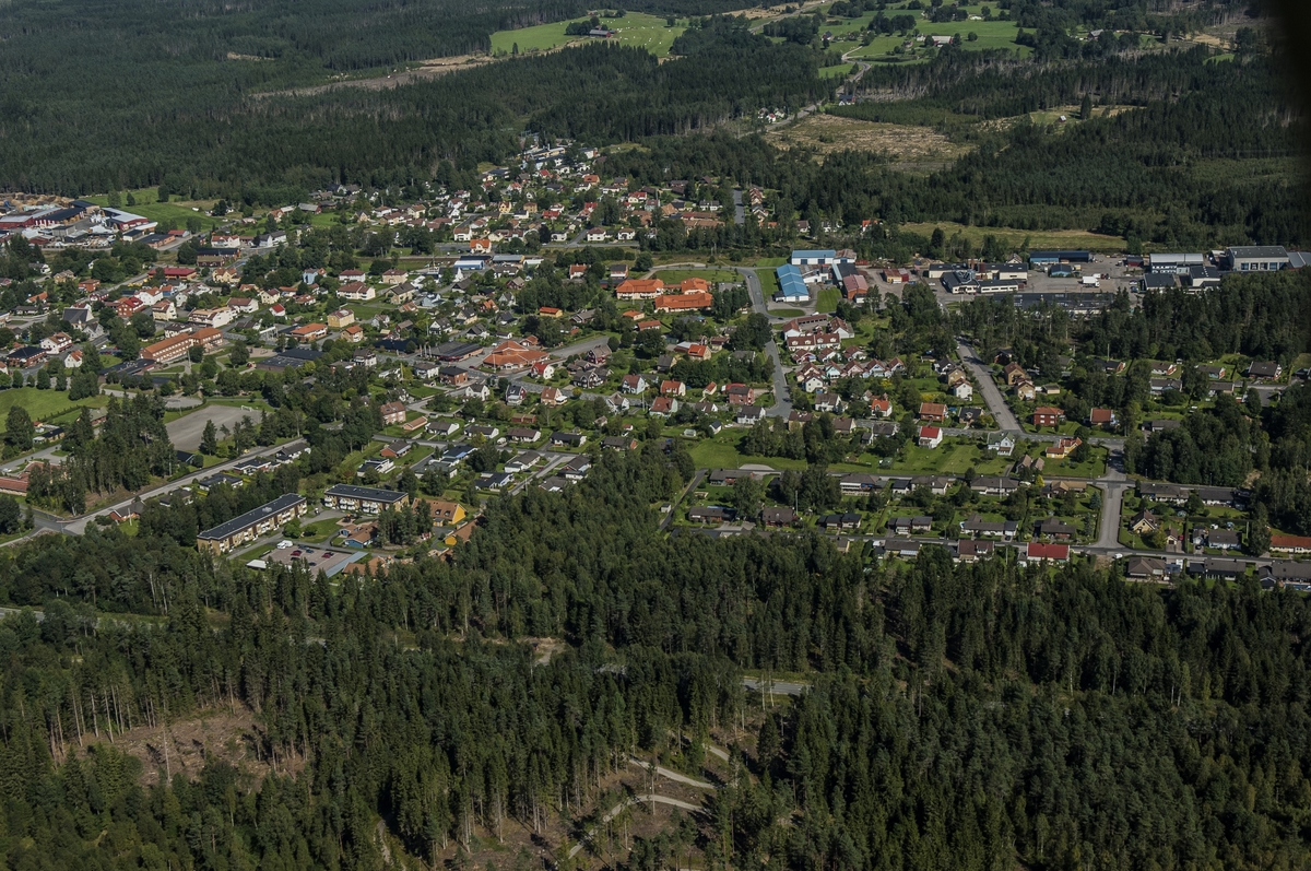 Titel: Flygfoto över Rydaholm i Värnamo kommun.
