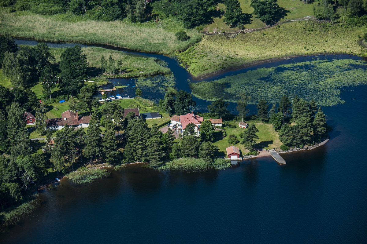 Flygfoto över Solviken vid sjön Sommen i Ydre kommun.