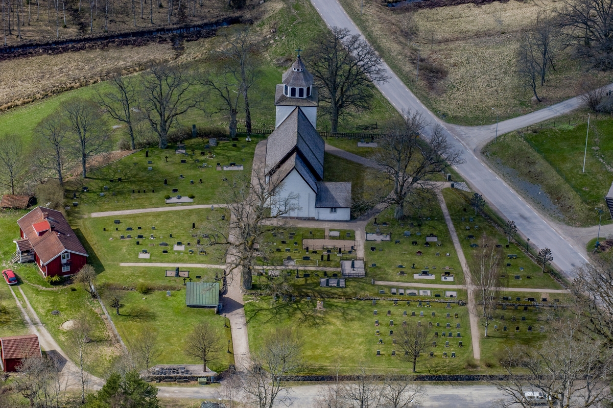 Flygfoto över Stenberga kyrka i Vetlanda kommun.