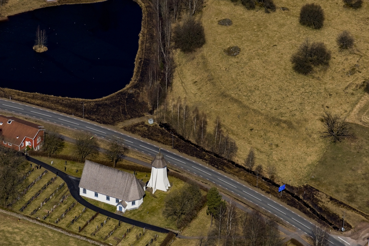 Flygfoto över Norra Unnaryds kyrka i Jönköpings kommun.