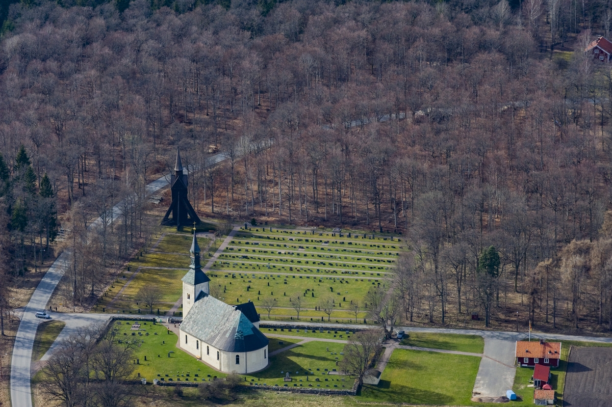 Titel: Flygfoto över Brahekyrkan på Visingsö.