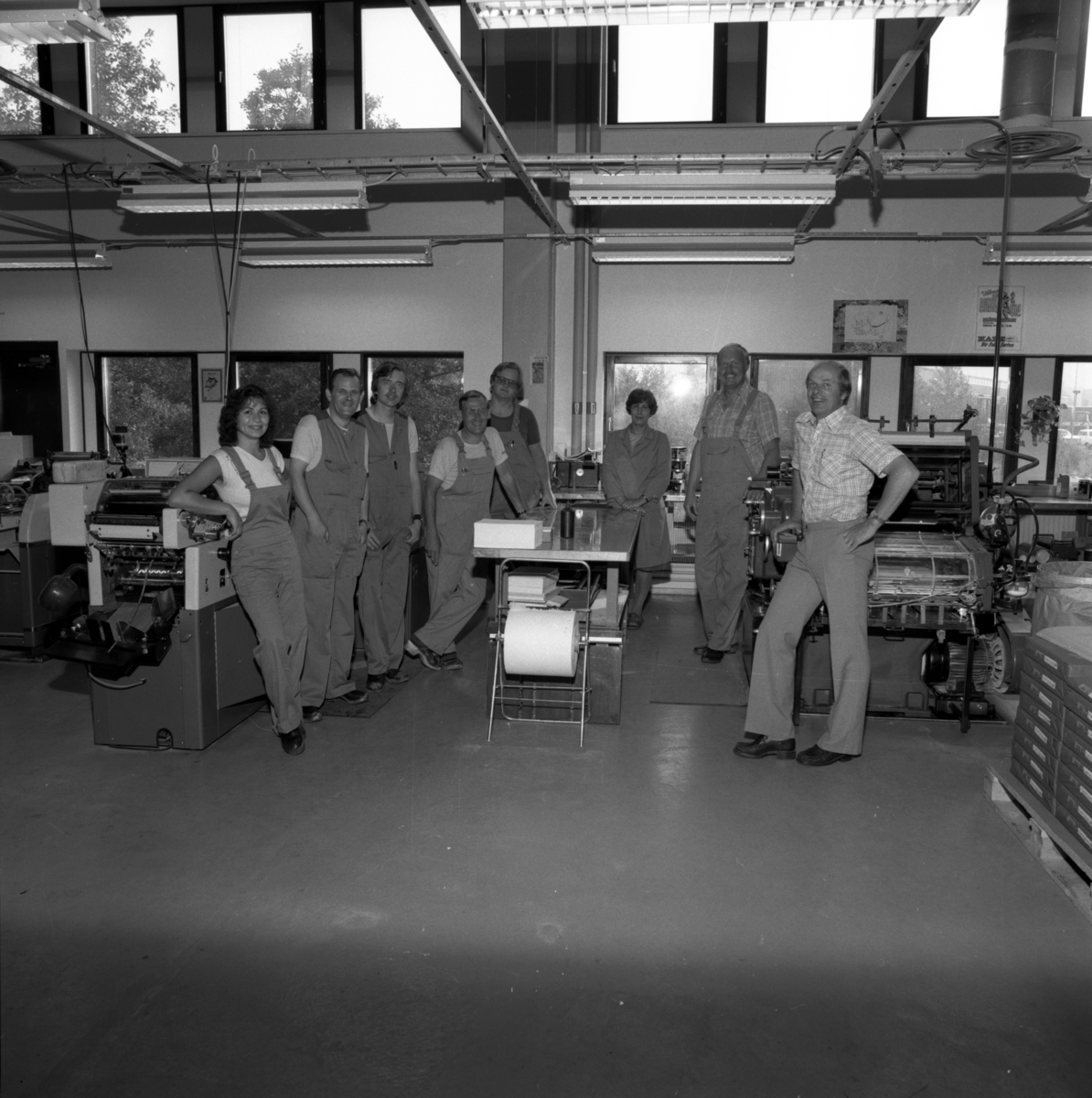 Titel: Personal hos arkitektkopia på Huskvarnavägen 158 i Huskvarna den 5 augusti 1981.