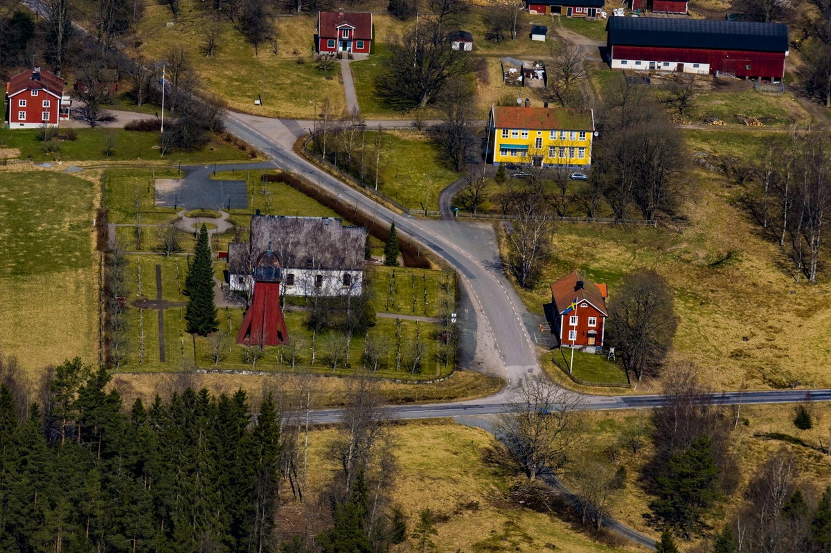 Flygfoto över Hagshults kyrka i Vaggeryds kommun.