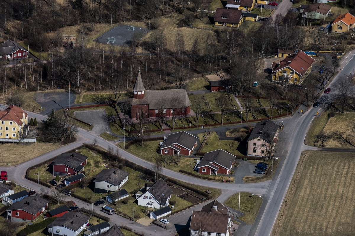 Flygfoto över Bondstorps kyrka i Vaggeryds kommun.