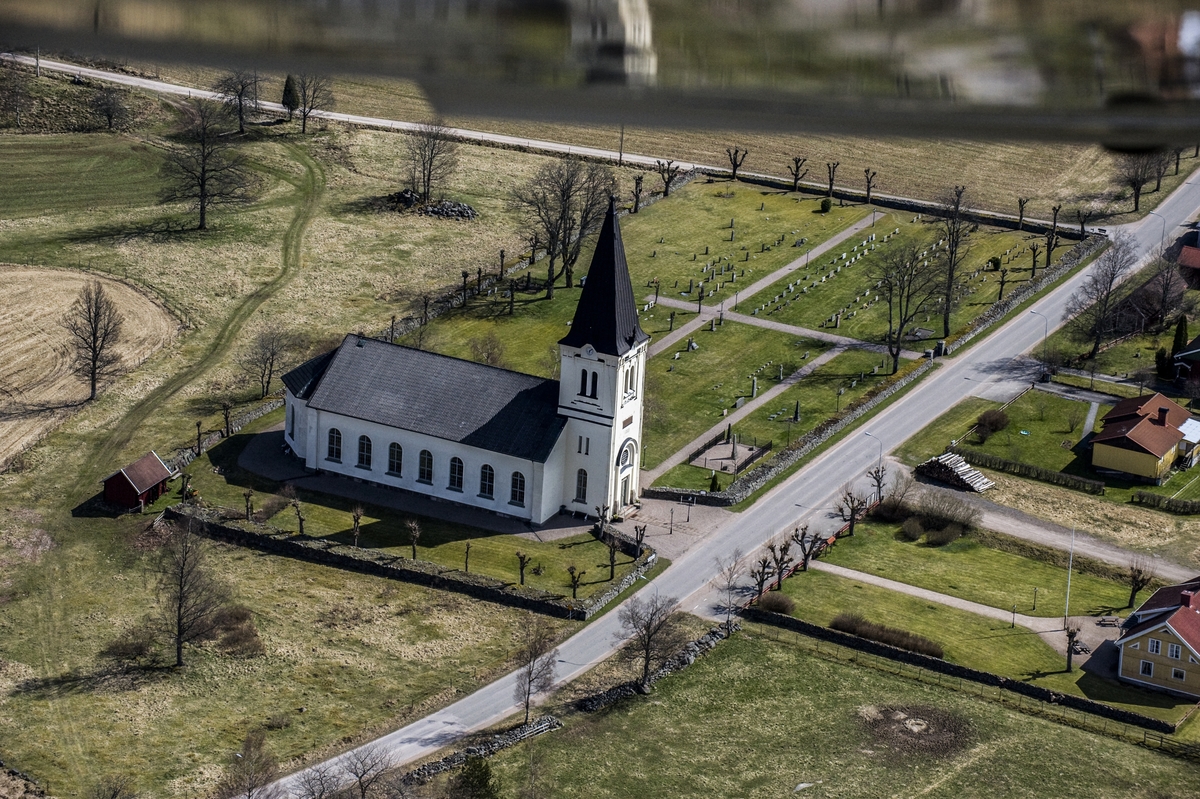 Flygfoto över Lemnhults kyrka i Vetlanda kommun.