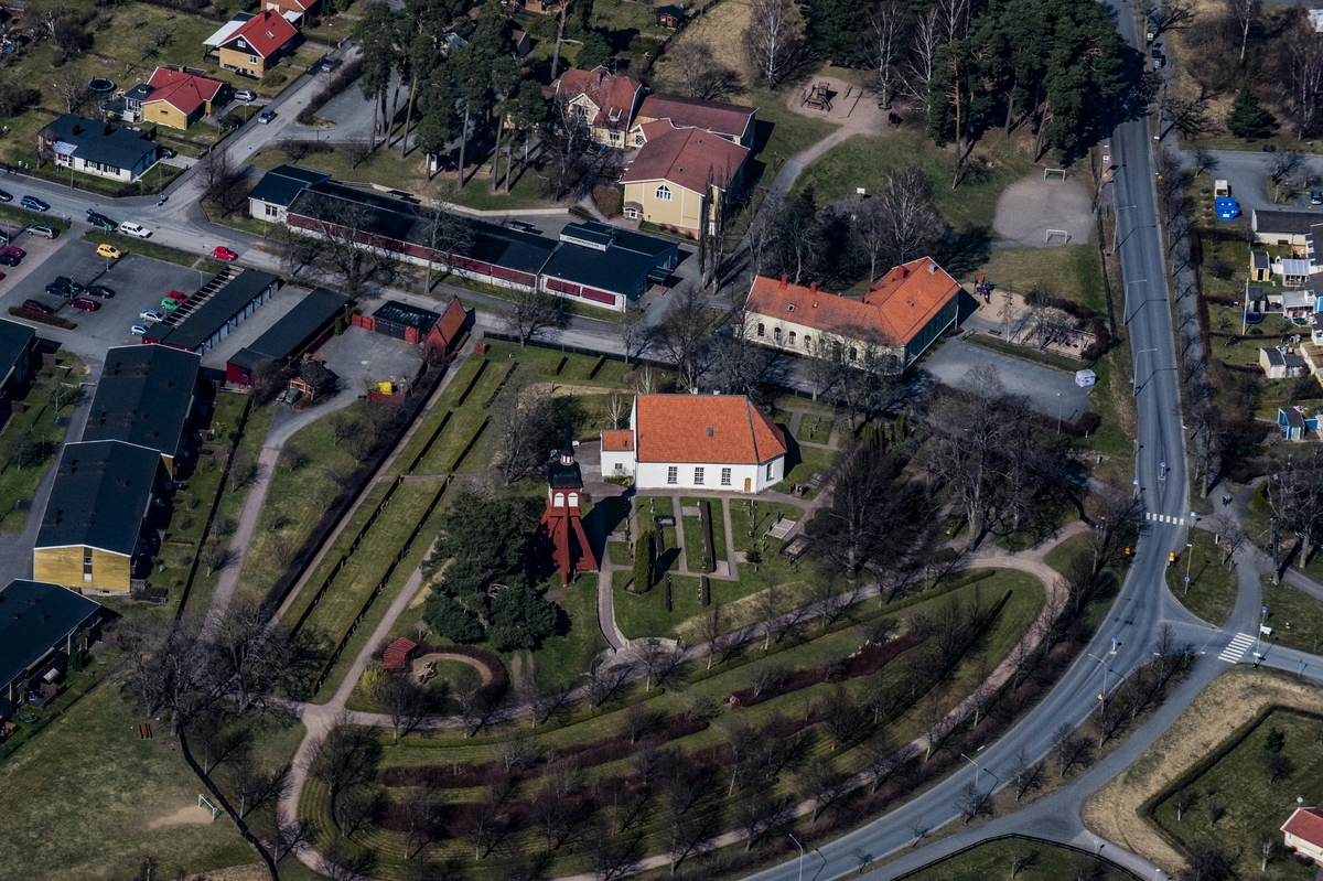 Titel: Flygfoto över Ljungarums kyrka i Jönköpings kommun.