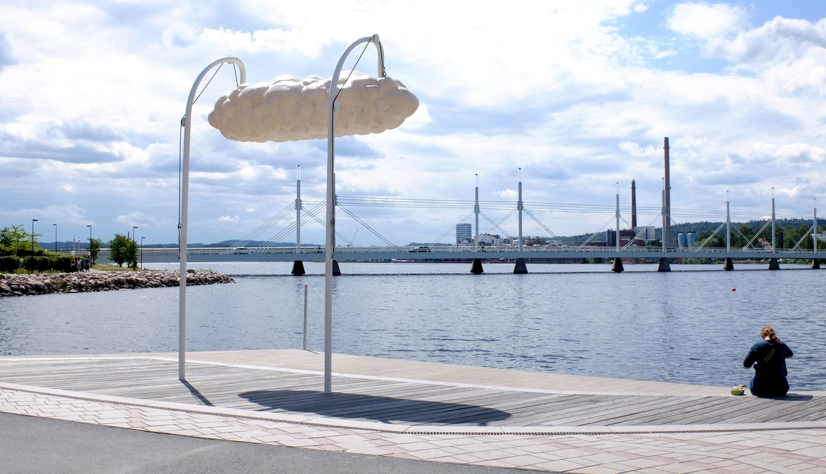 "Moln" med belysning av bildkonstnären Emma Kronvall vid Munksjön i Jönköping.