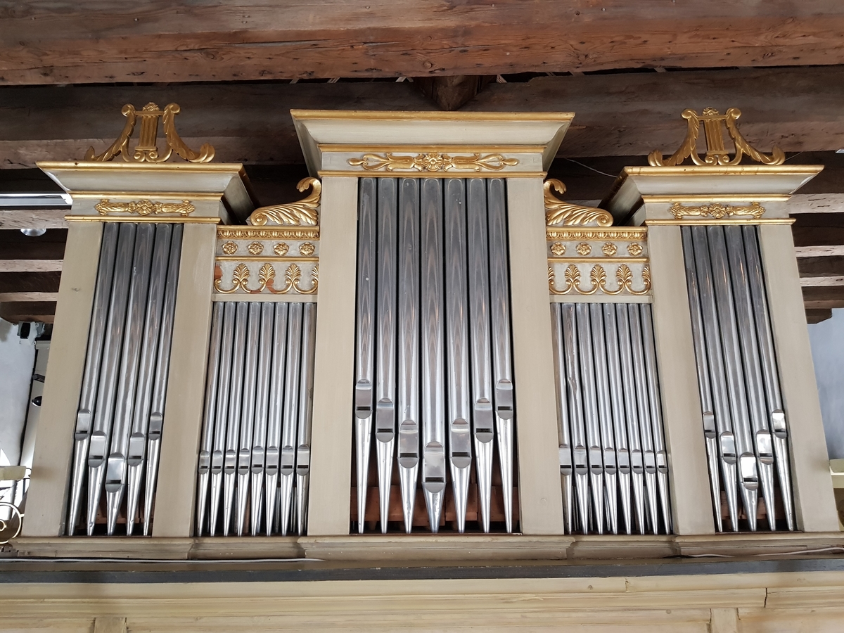 Orgelfasaden på kyrkorgeln i Forserums kyrka, Nässjö kommun.
