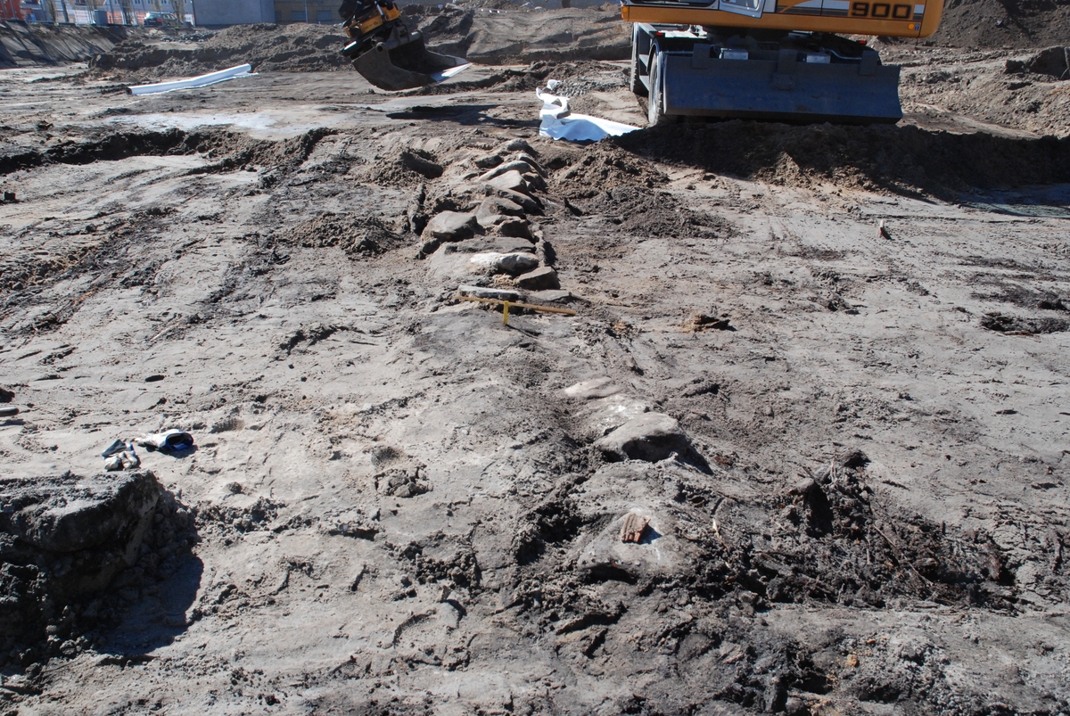 Stensyll i den södra väggen i Hus 1346 på tomt 208 vid arkeologisk undersökning, kvarteret Domherren 23, RAÄ 50:1, Jönköpings stad och kommun.