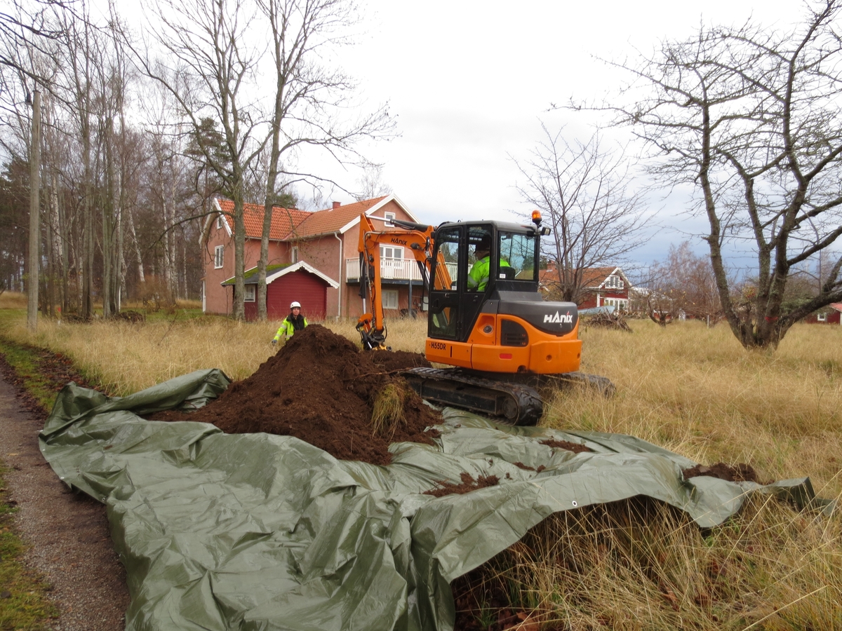 Schaktningsarbete vid arkeologisk utredning i Tunnerstad, Visingsö, Jönköpings kommun.
