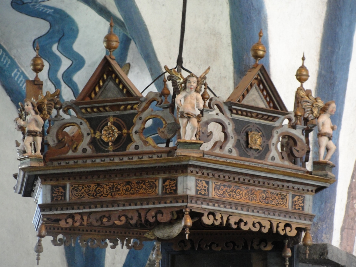 Baldakinen över predikstolen i Brahekyrkan på Visingsö, Jönköpings kommun.