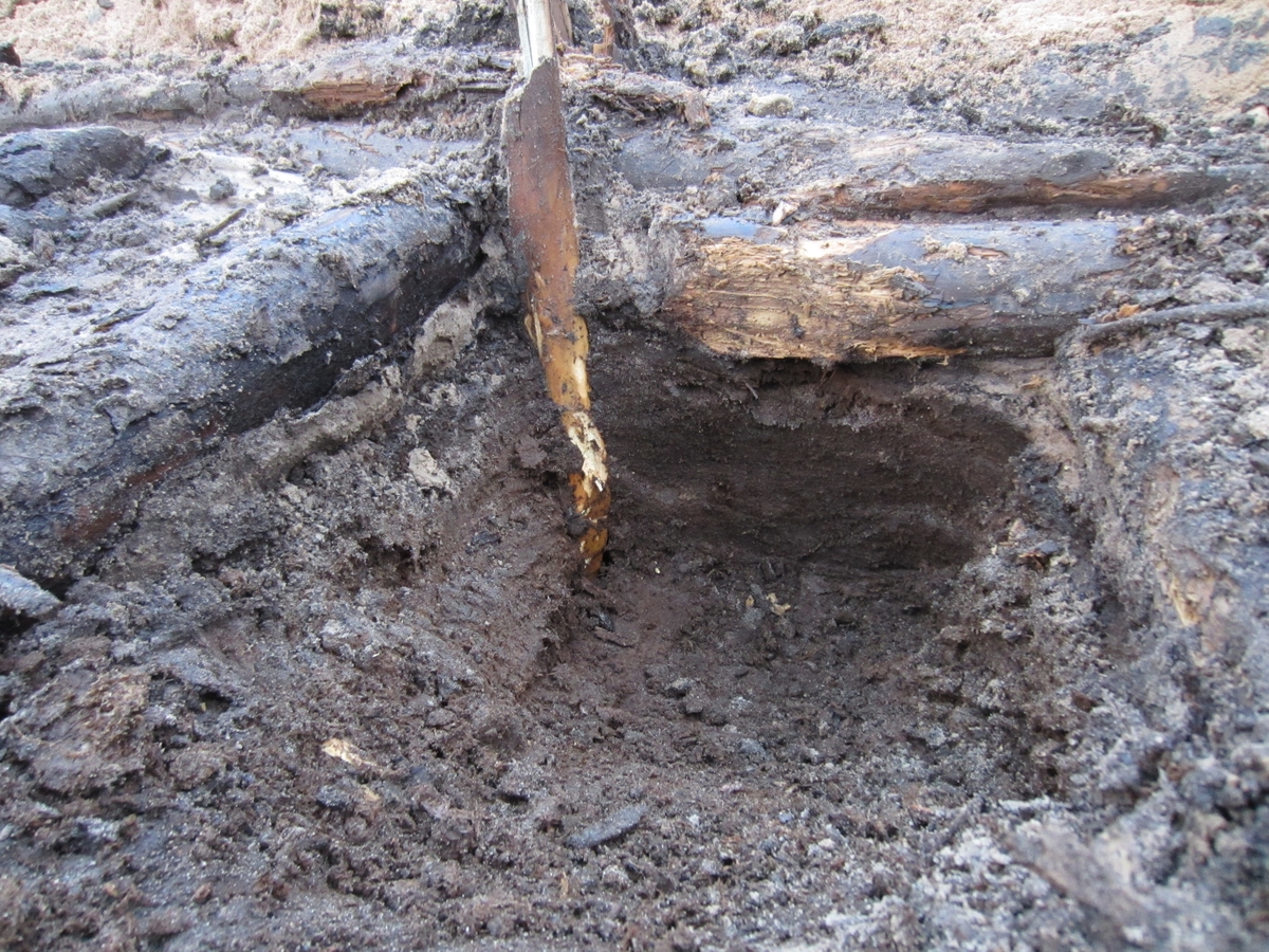 Rustbäddar och en gärdesgårdsstolpe som det senare gjordes en dendrodatering på. Rustbädden låg under odlingsbäddarna i kvarteret Citadellet 10, Jönköpings stad och kommun.