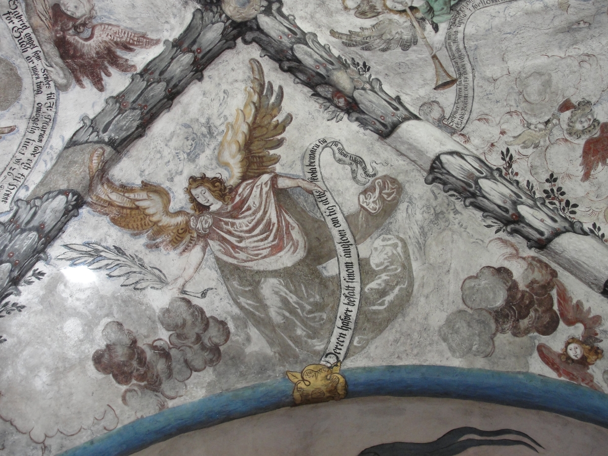 Kalkmålning i valvet över det braheska gravkoret i Brahekyrkan på Visingsö, Jönköpings kommun.