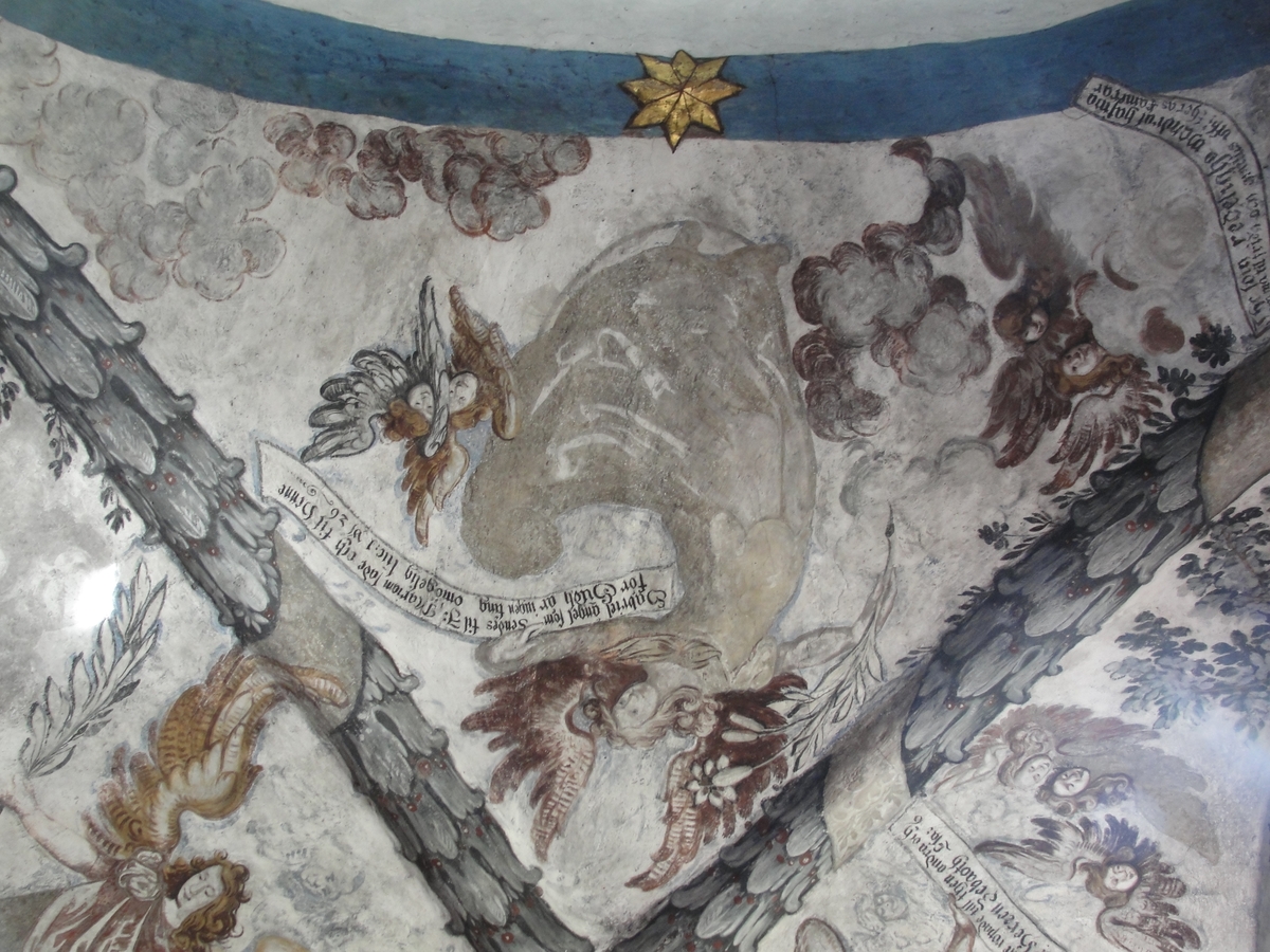 Kalkmålning i valvet över det braheska gravkoret i Brahekyrkan på Visingsö, Jönköpings kommun.