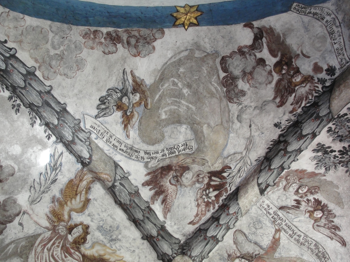 Kalkmålning i valvet över det braheska gravkoret i Brahekyrkan på Visingsö, Jönköpings kommun.
