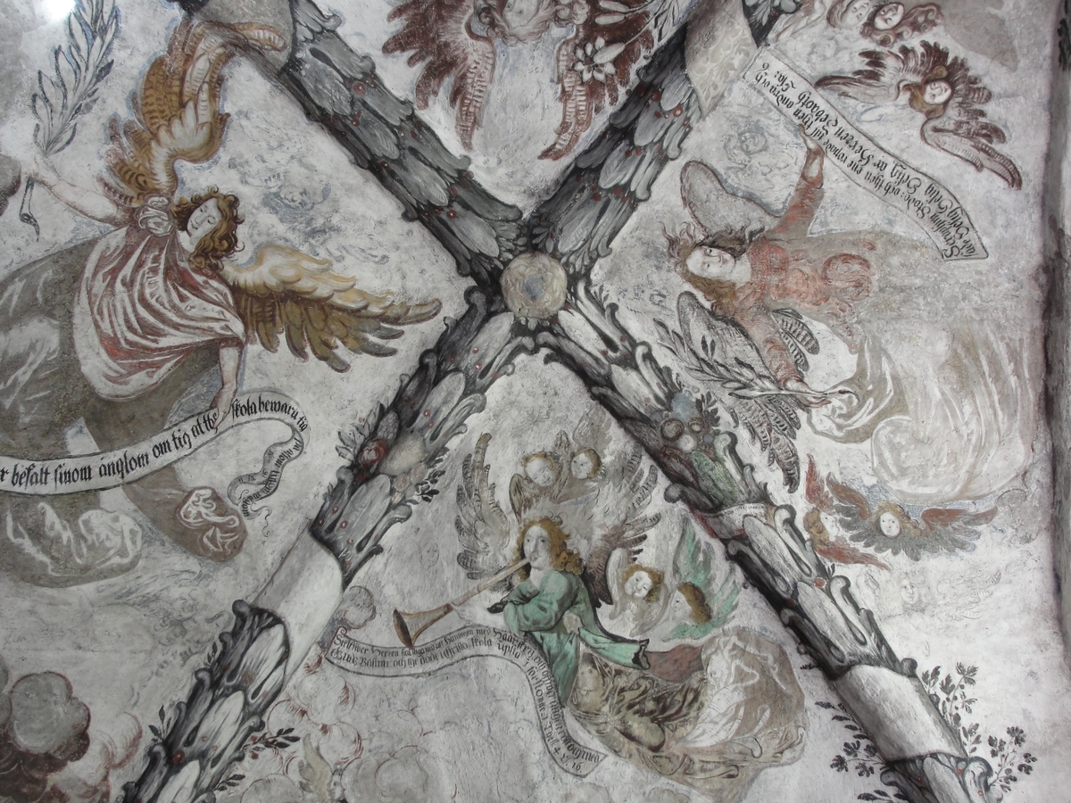 Kalkmålning i valvet över det braheska gravkoret i Brahekyrkan på Visingsö, Jönköpings kommun.