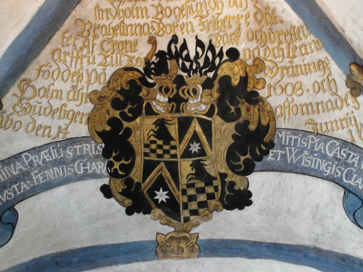 Kalkmålning i Brahekyrkan på Visingsö, Jönköpings kommun. På bilden syns ätten Stenbocks vapensköld.