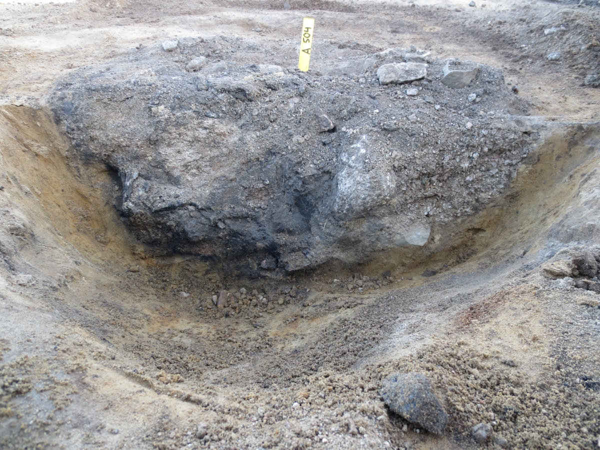 En härd som framkommit vid en arkeologisk utredning i Gränna, Jönköpings kommun.